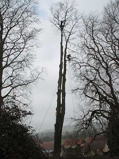 Nos techniciens sont des spécialistes des arbres de grande taille, compétents dans la minimisation des risques tout en veillant à la santé de l’arbre.